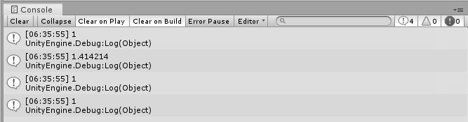 public class VectorDebuger : MonoBehaviour { private void Start() { Vector2 upwardDir = new Vector2(0, 1); Vector2 diagonalDir = new Vector2(1, 1); Debug.Log(upwardDir.magnitude); Debug.Log(diagonalDir.magnitude); Debug.Log(upwardDir.normalized.magnitude); Debug.Log(diagonalDir.normalized.magnitude); } } Colored by Color Scripter |